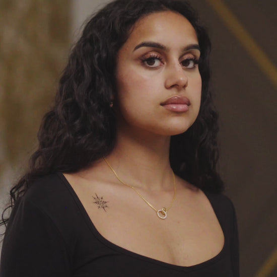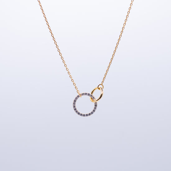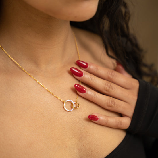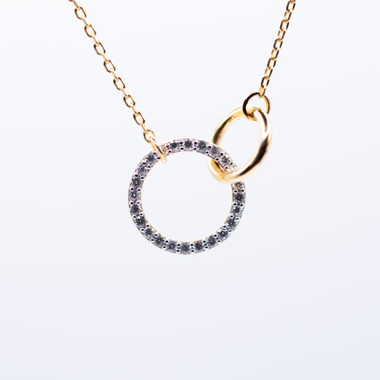 A graceful ode to enduring connection, the Infinite Love Pendant features two interlocking circles—one polished gold, the other shimmering with pavé-set lab-grown diamonds. Together, they symbolize unity, balance, and a love without end.