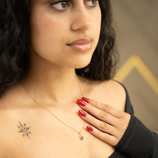 The Rise Again Pendant features a radiant emerald-cut green stone—symbolizing growth, renewal, and the power to begin again. Set in 18k gold vermeil, this piece is a tribute to resilience and the beauty of rising stronger, no matter how many times you fall.